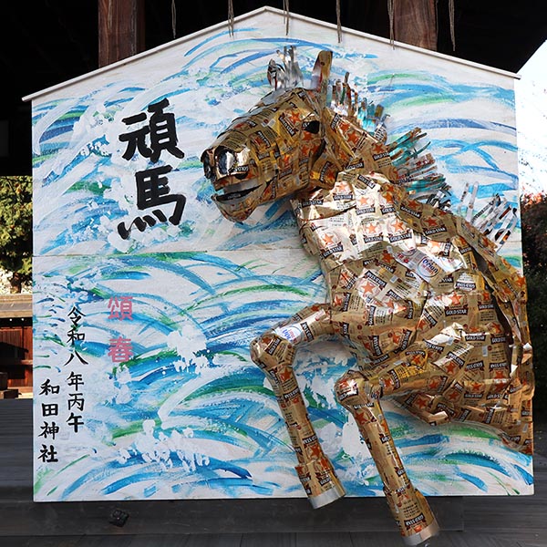 和田神社には新年の絵馬が飾られ、膳所の神社では、迎春準備が氏子の皆さんにより行われました。ちなみに和田神社の絵馬は一年間飲んでいたビール缶を使った立体絵馬で、作者は、恥ずかしながら私です。